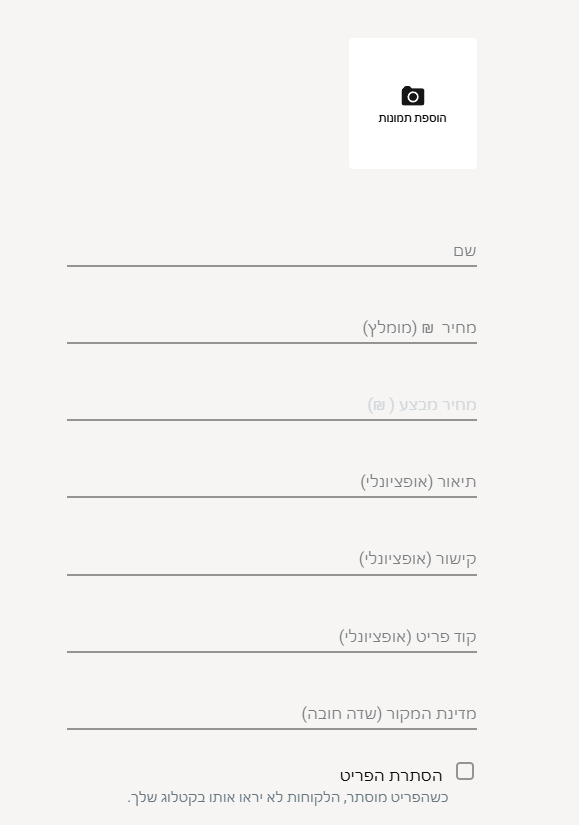 הוספת מוצרים לקטלוג